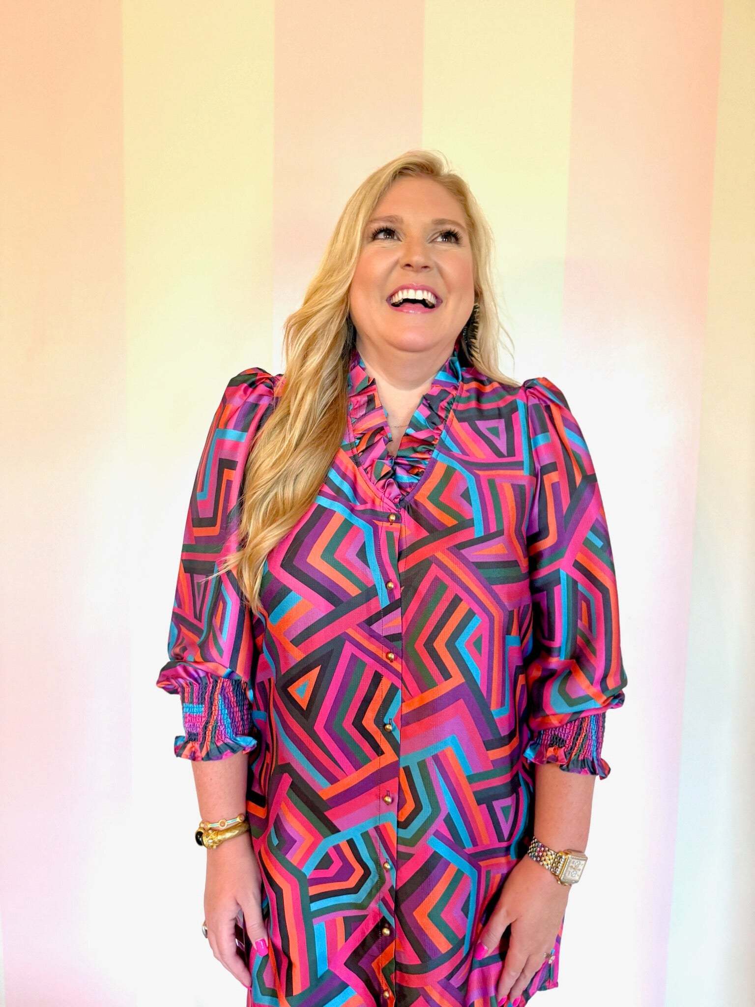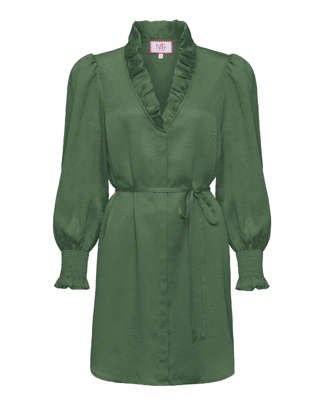The Fall Harper Dress is an effortlessly elegant take on a best-selling silhouette. Crafted from luxurious hammered poly fabric with a subtle texture and soft drape, this dress features a charming ruffle neckline and gleaming gold buttons that run all the way down the front. Perfect for layering or wearing on its own, it blends timeless detail with easy, season-ready style.