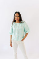 The Emma Top, known for its durability, smooth texture, and lightweight feel. It features balloon sleeves, which add a touch of volume and a statement silhouette to the top. This combination makes the Emma both comfortable and stylish, perfect for a variety of occasions.